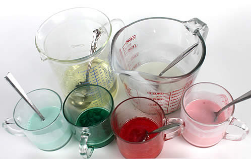 TWO: Once your fragrance oil is fully mixed in, add your colorants and stir well. Remember a little goes a long way and WYSIWYG (what you see is what you get). We usually recommend 1/8 teaspoon of colorant per pound of soap base but feel free to get creative with this part! Coral and Shamrock Green are both oil soluble colorants so they do better if you mix the color ahead of time in your fragrance oil (otherwise, they speckle which is a cool design look, but might not be what you’re going for).
